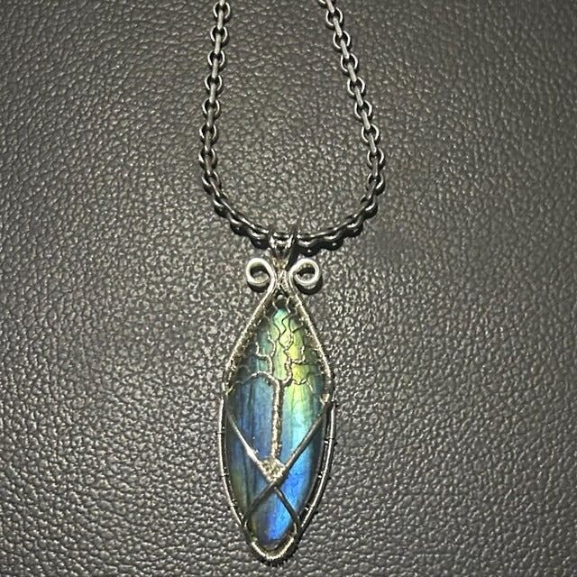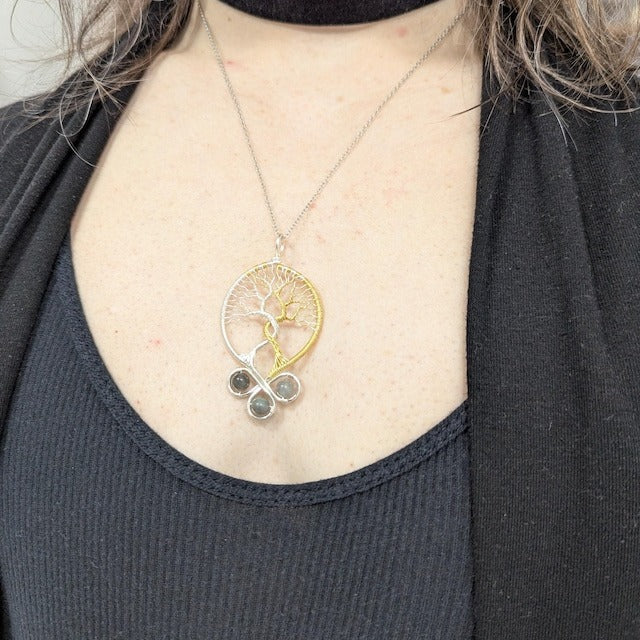 Tree pendant with a labradorite gemstone