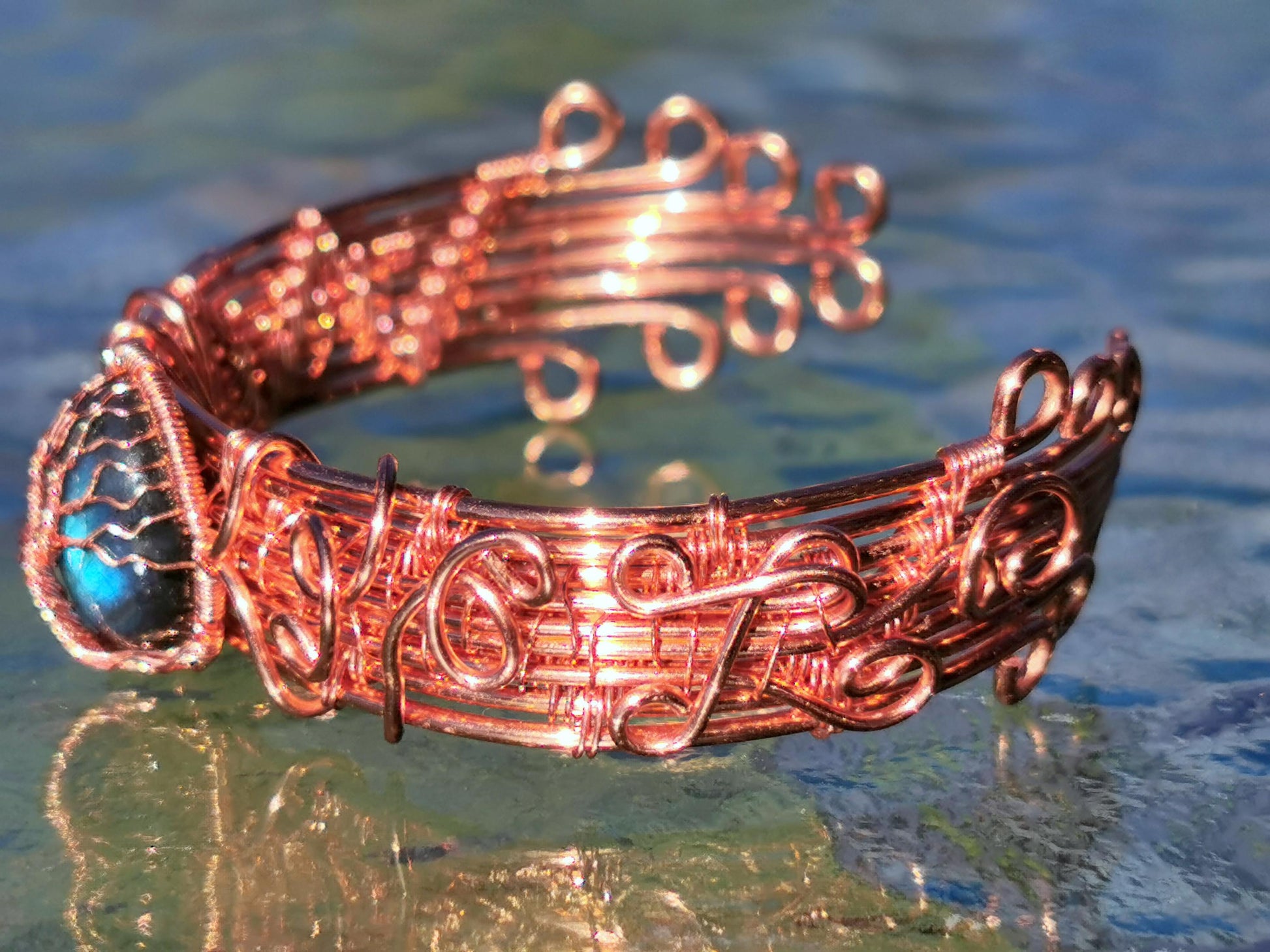 Cuff tree bracelet with a labradorite gemstone
