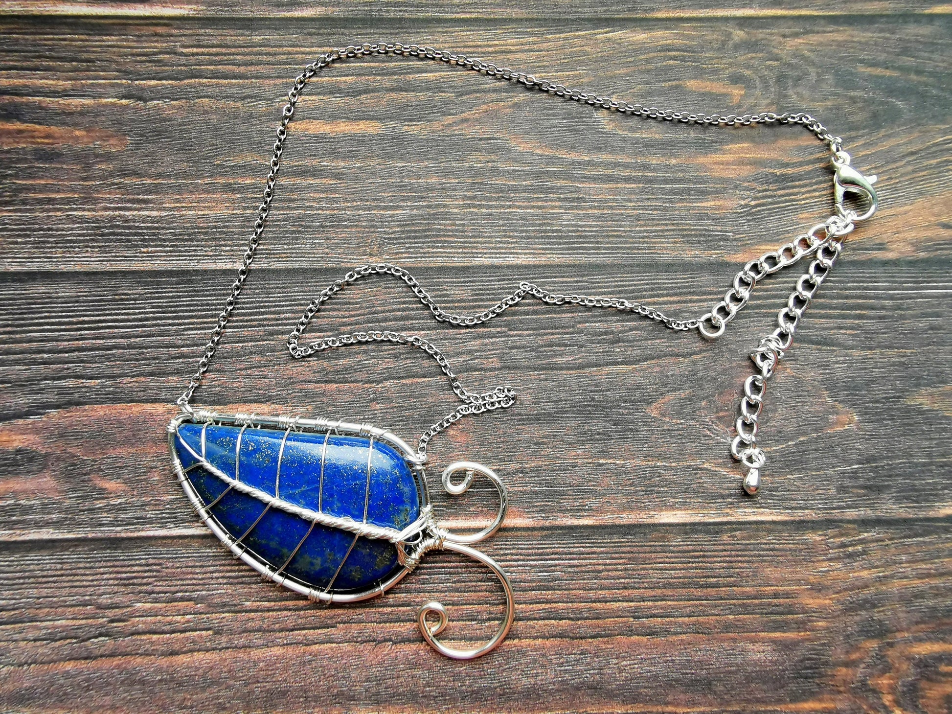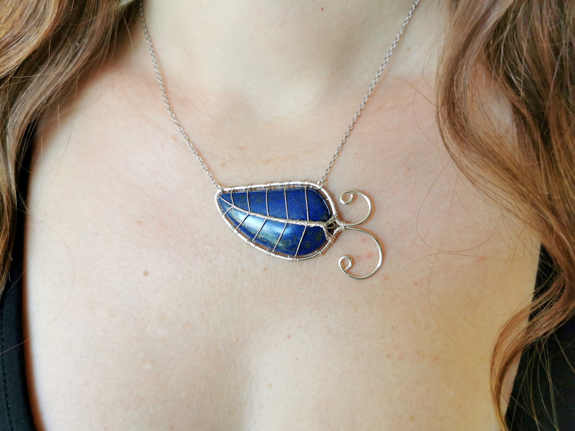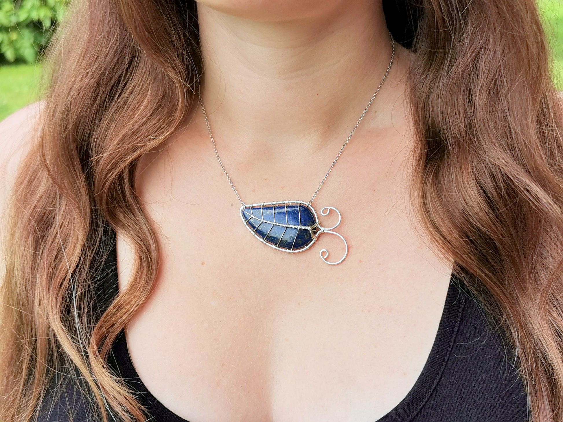 Leaf necklace with a lapis lazuli gemstone