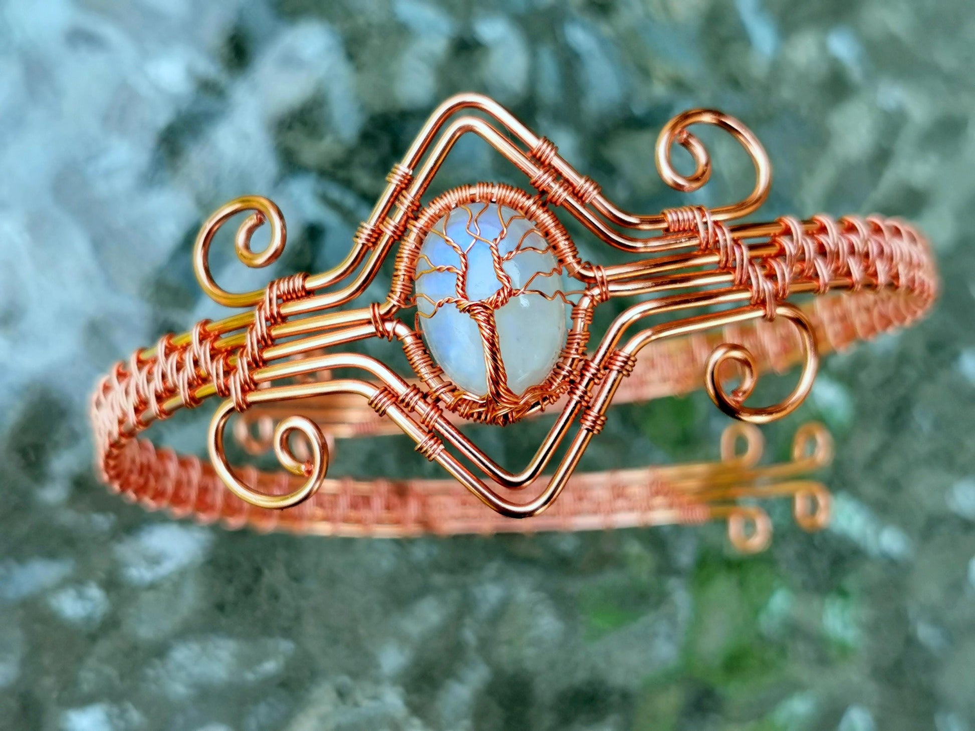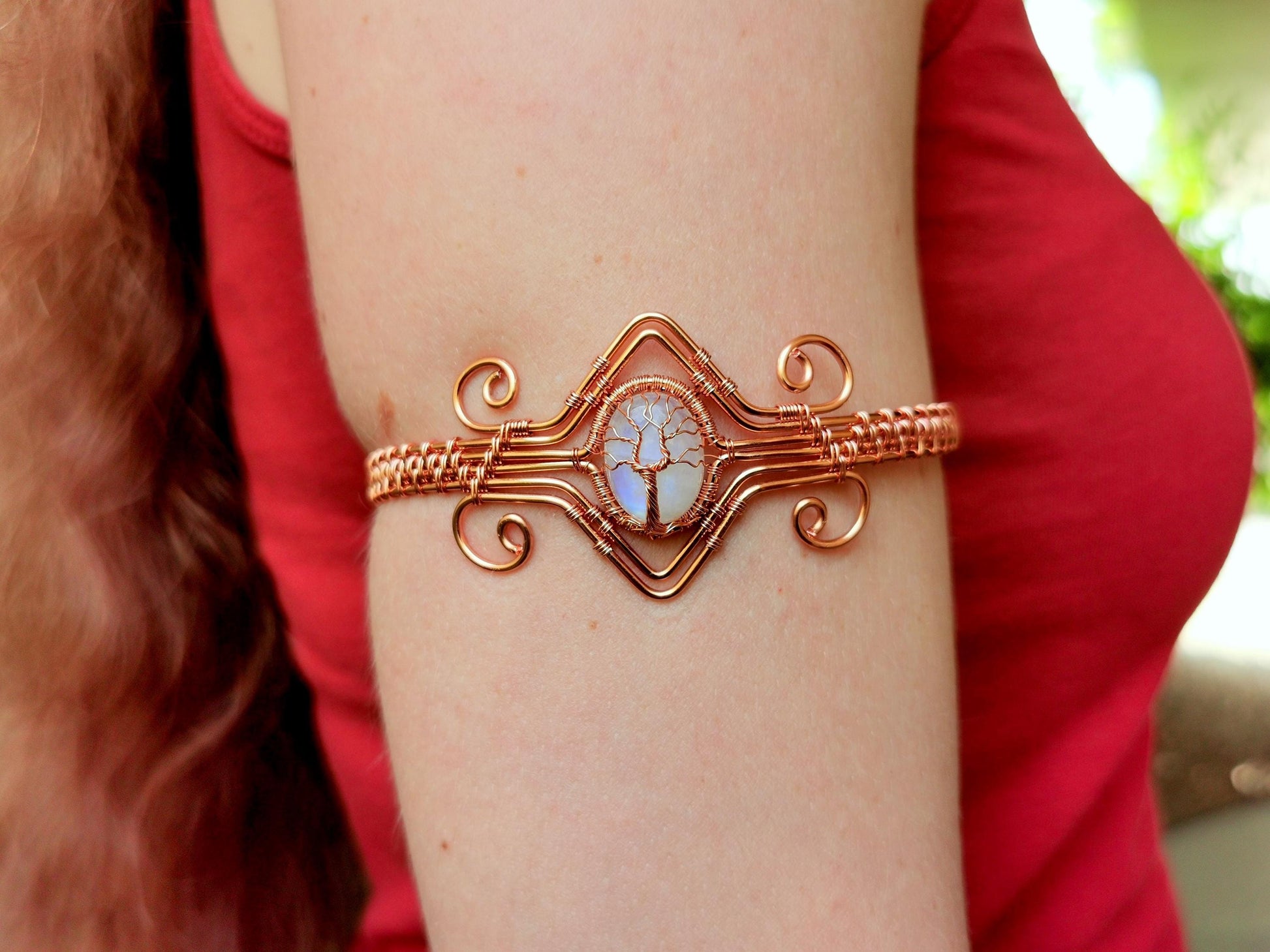 Tree arm ring with a moonstone gemstone