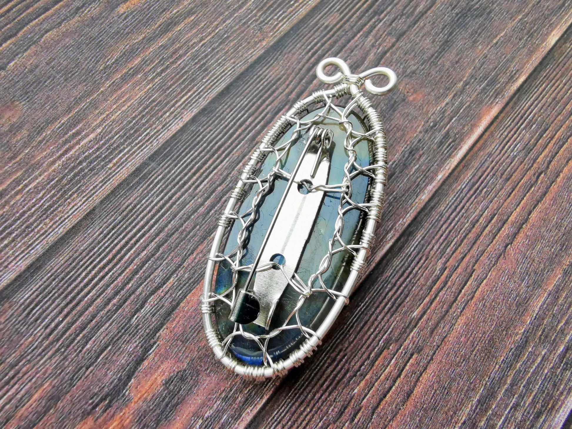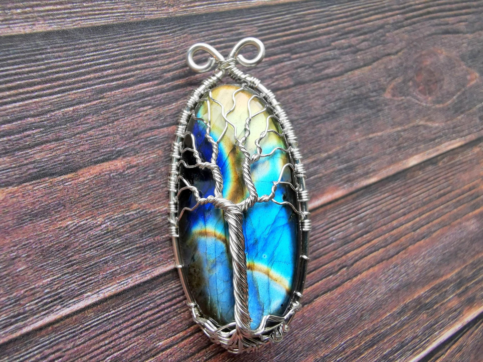 Tree brooch with a labradorite gemstone