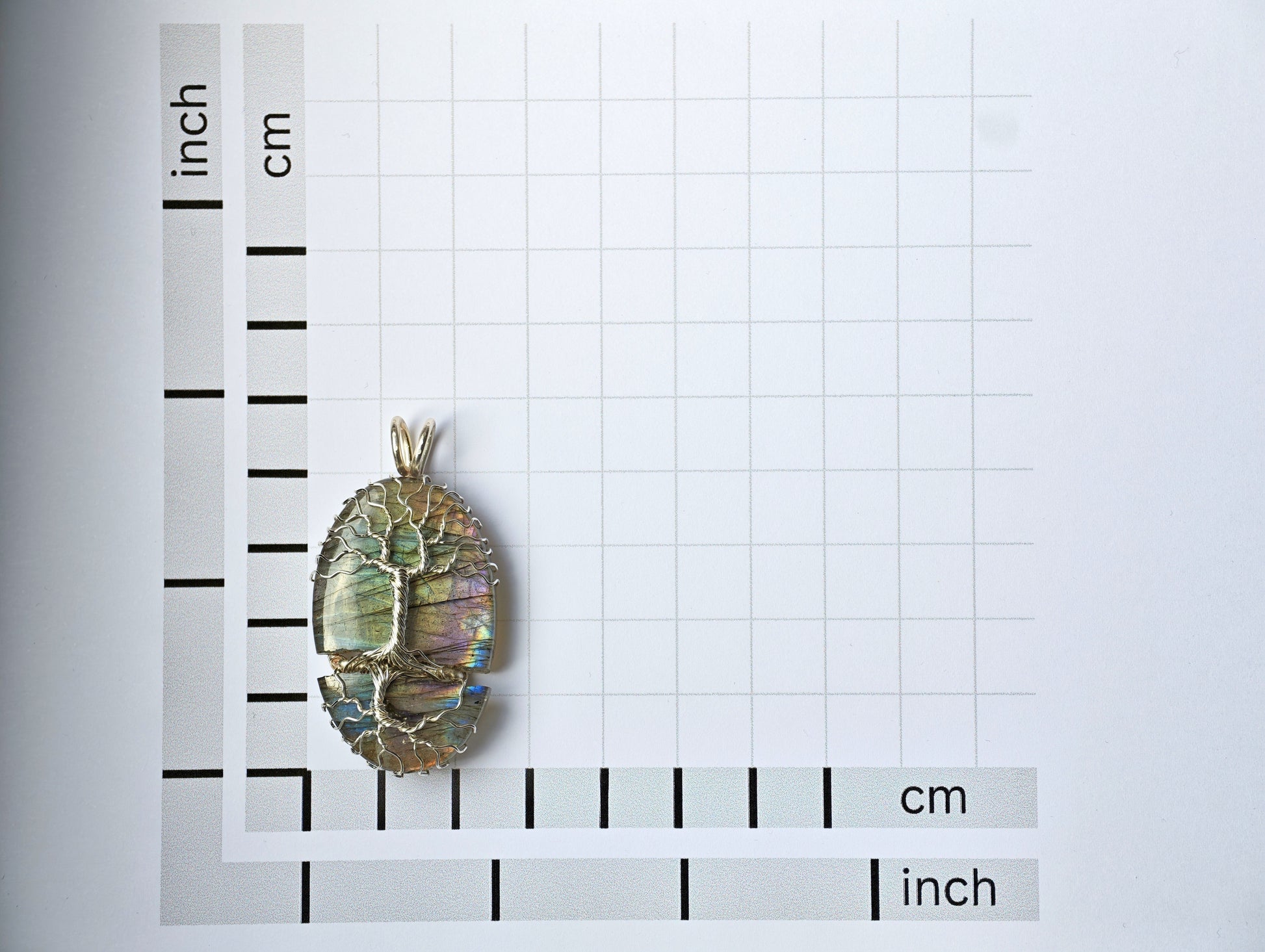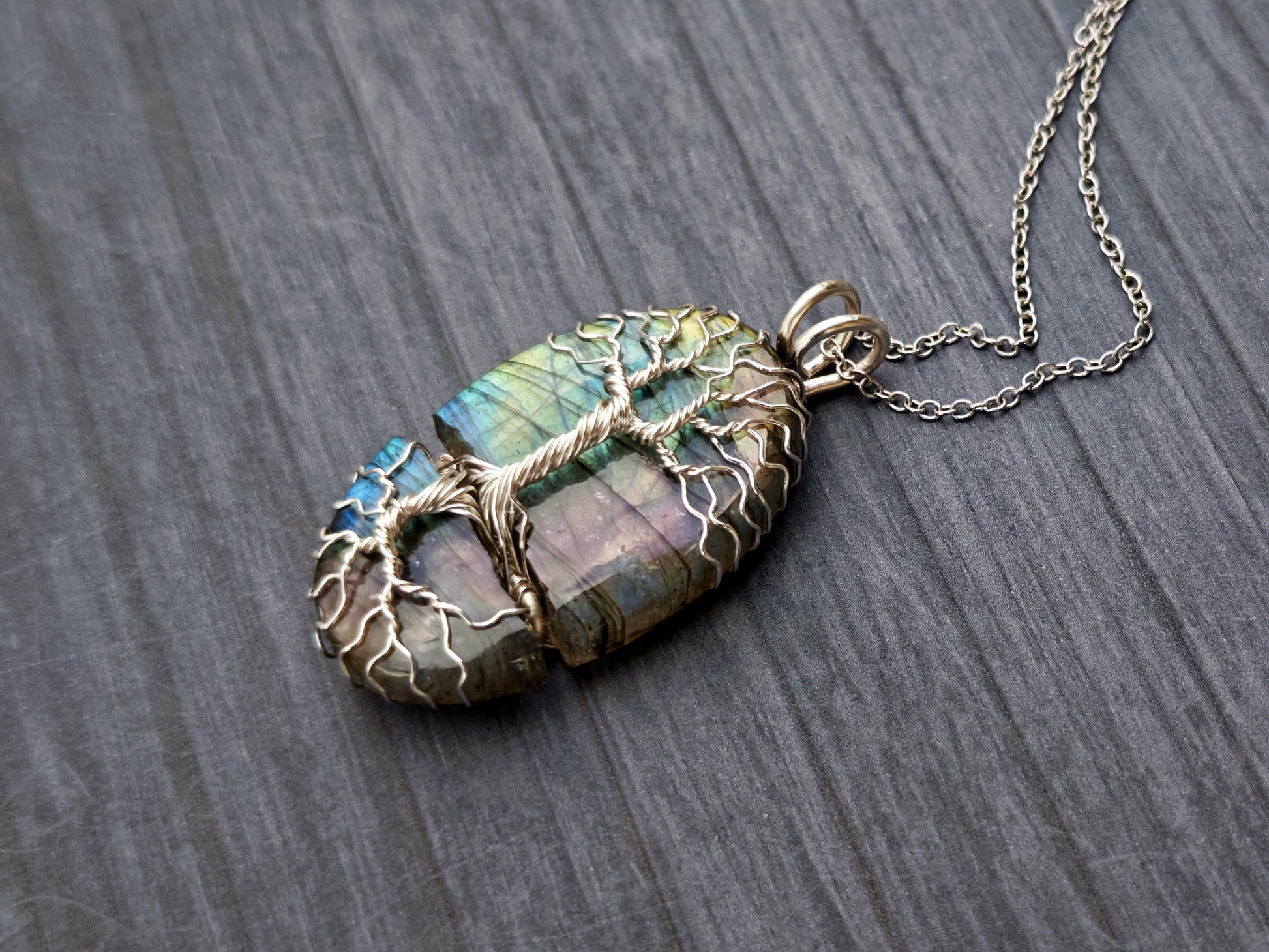 Tree pendant with a broken labradorite gemstone