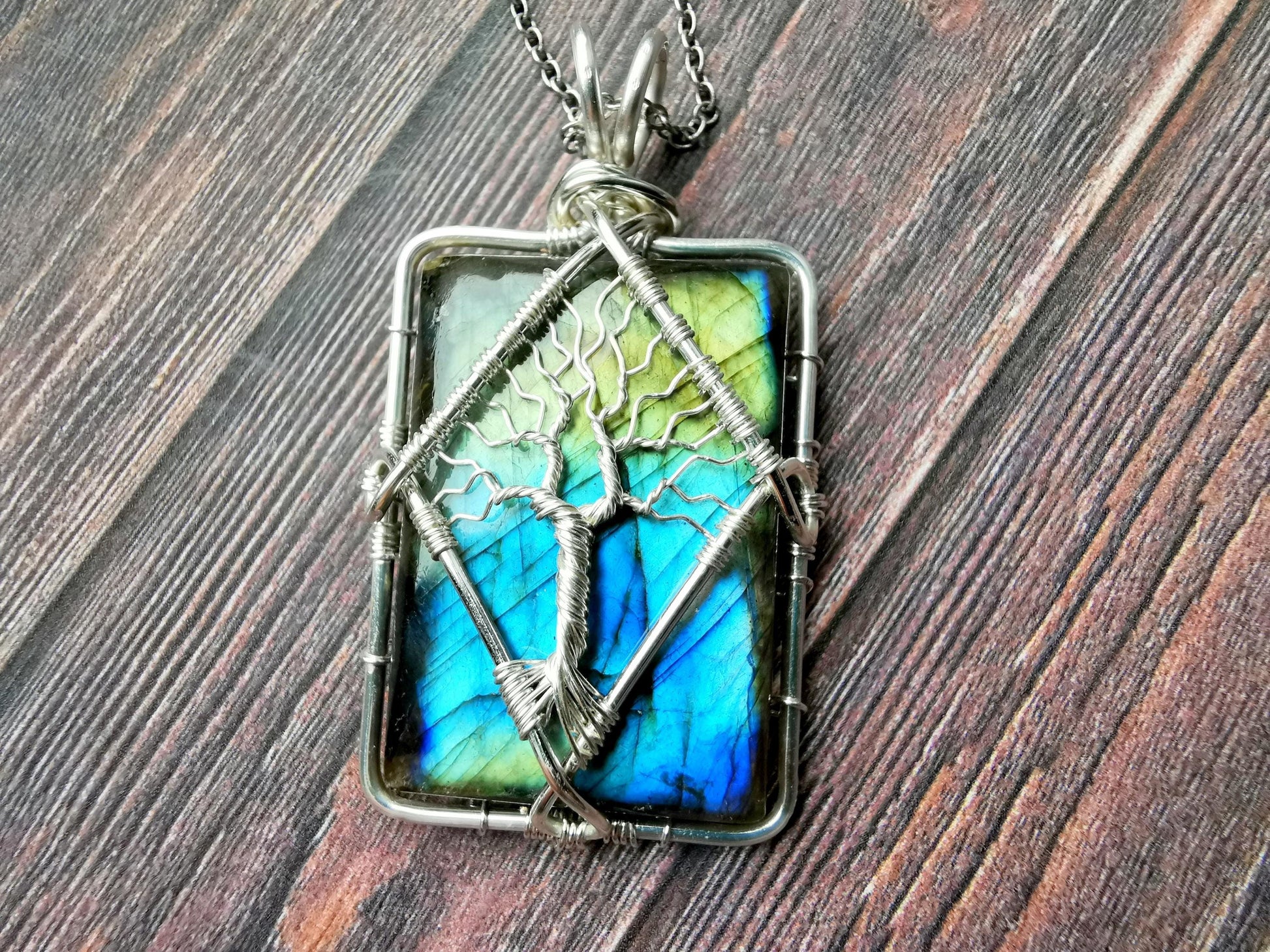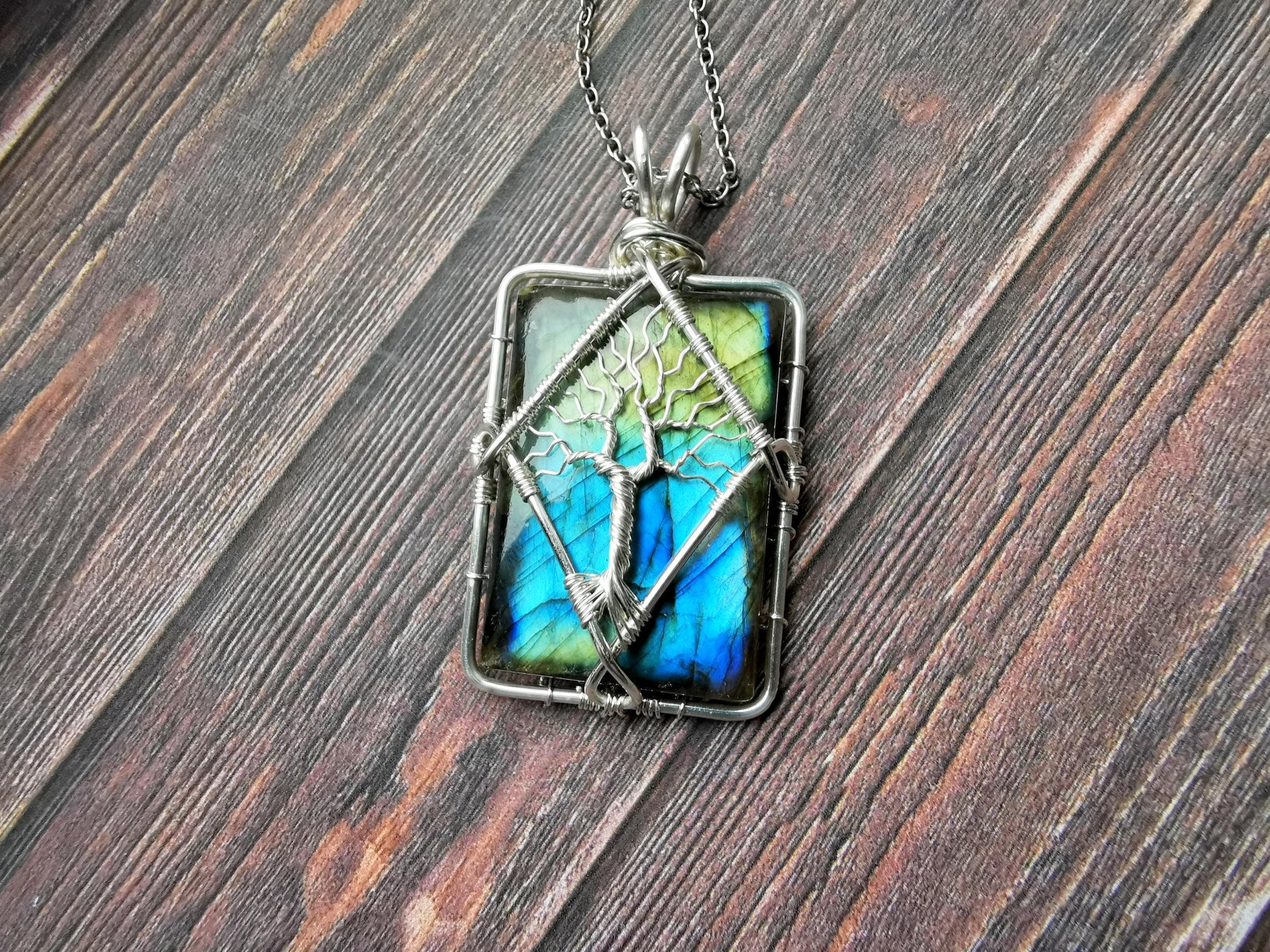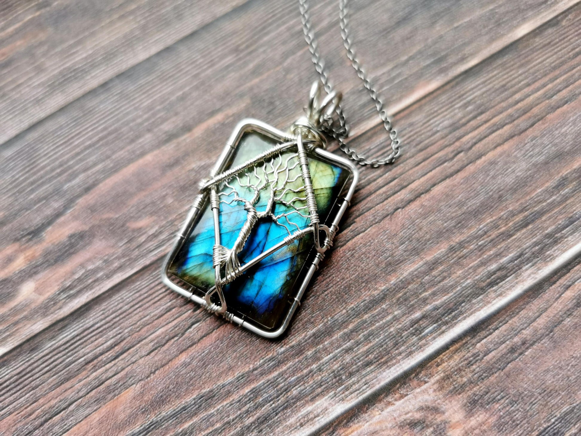 Tree pendant with a labradorite gemstone