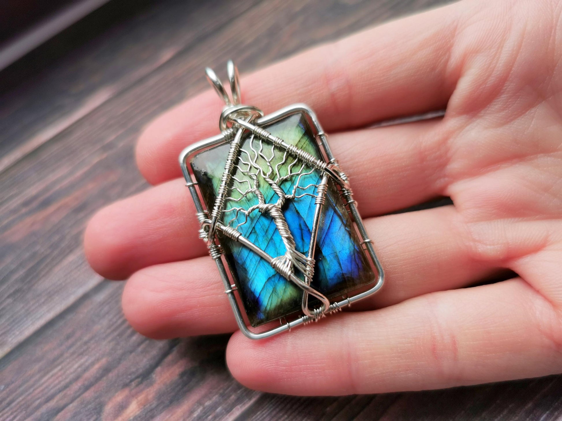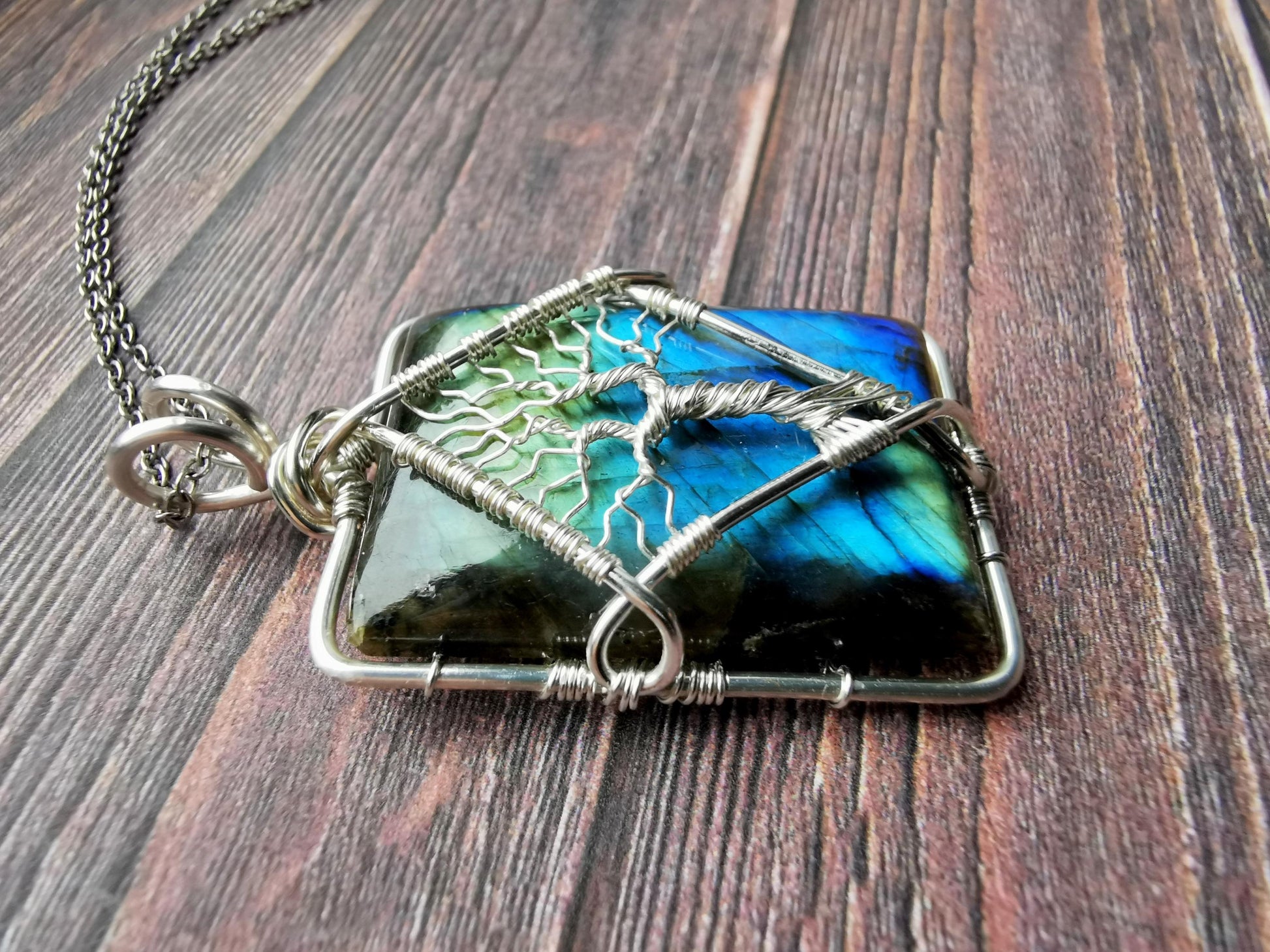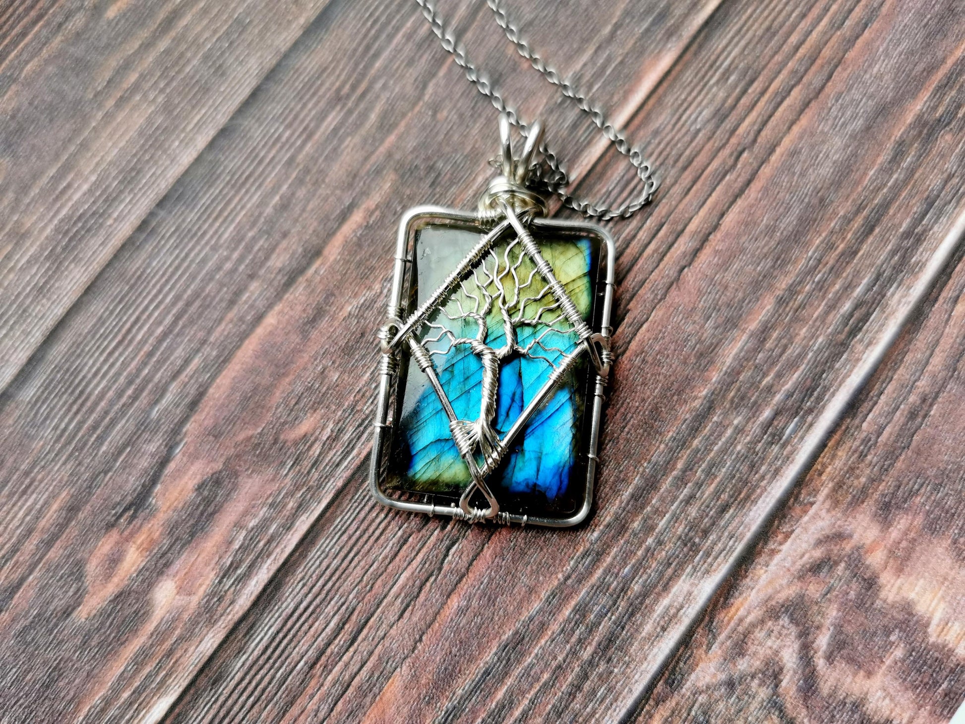 Tree pendant with a labradorite gemstone