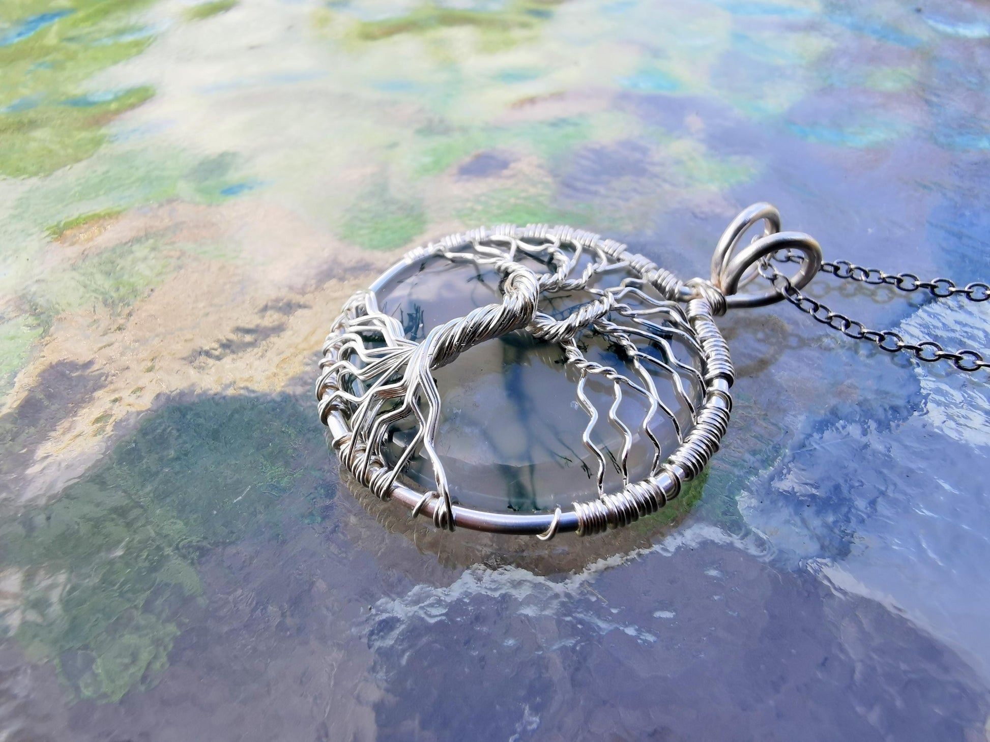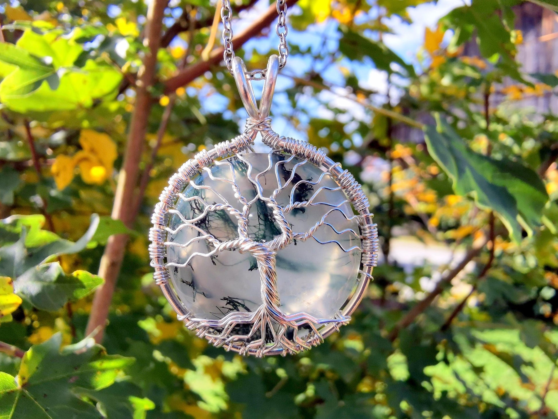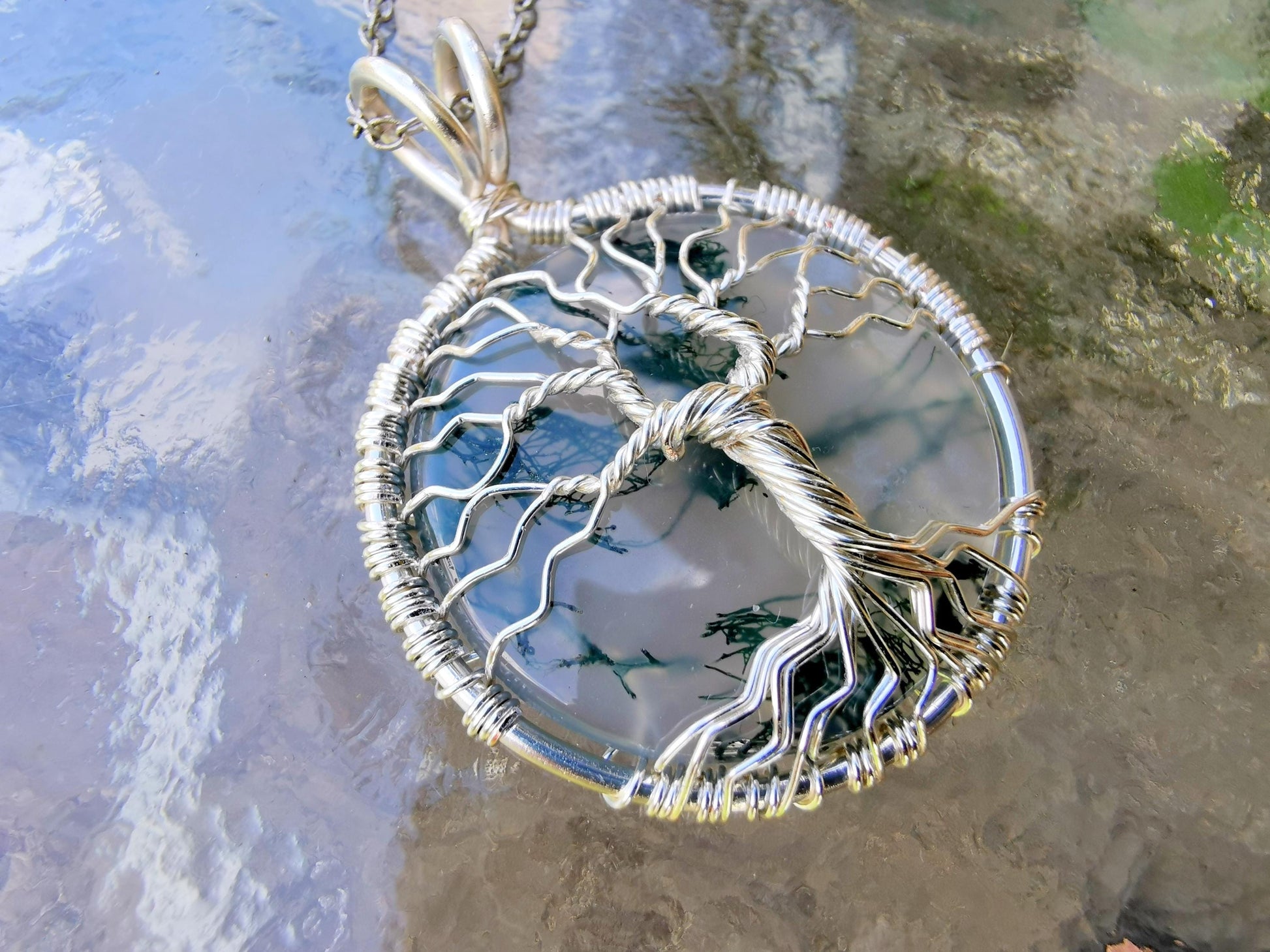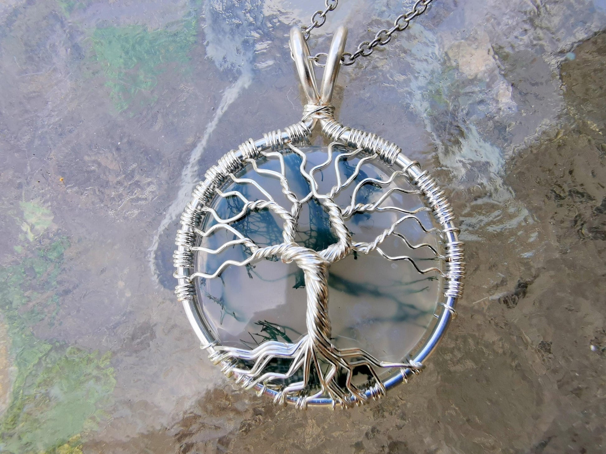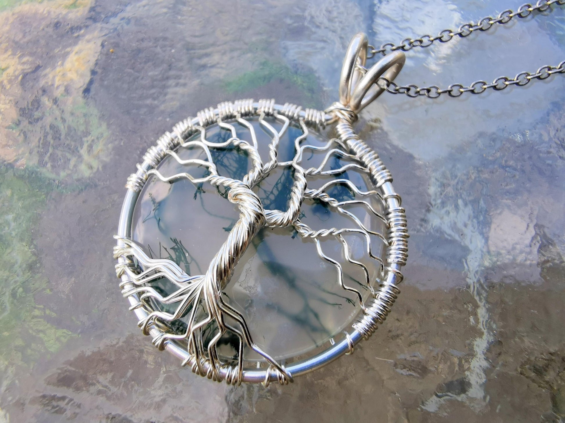 Tree pendant with a moos agate gemstone